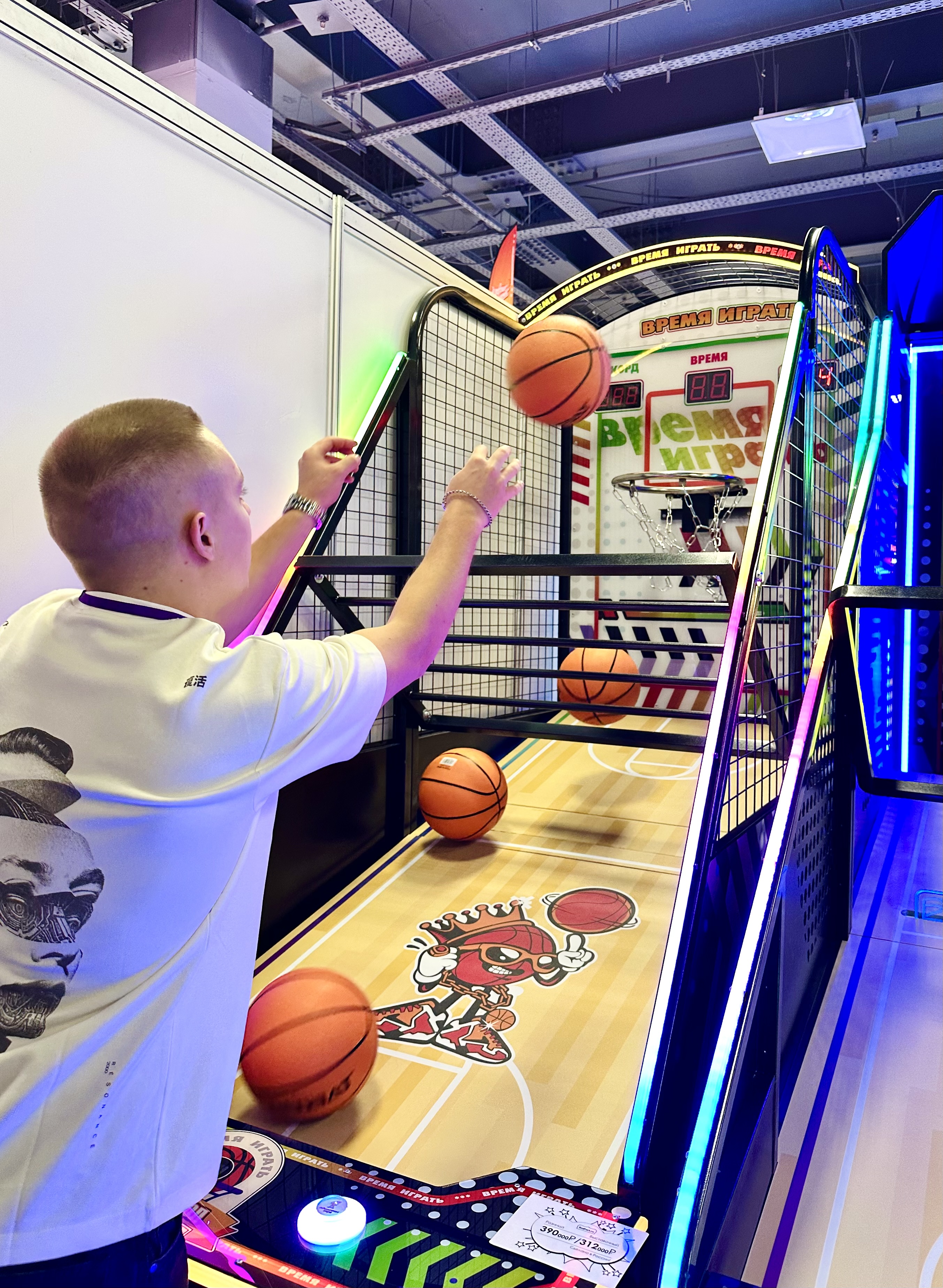 максимальное количество очков, попадая мячом в корзину.