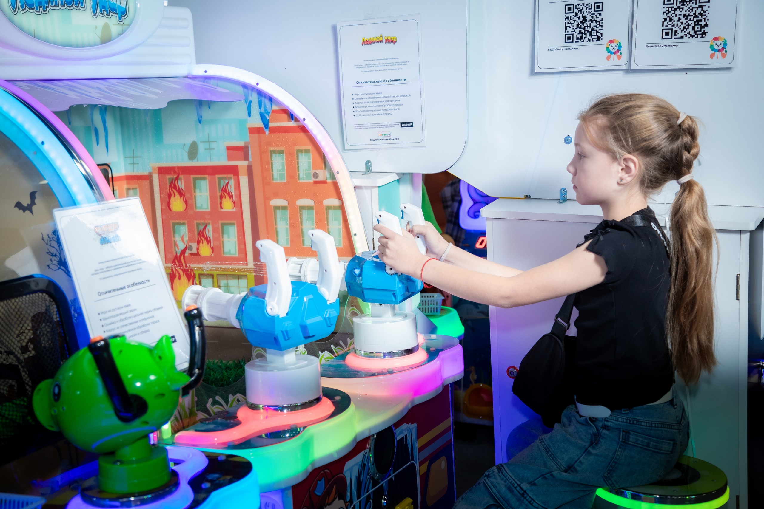 <comment>Дети обожают эту игру! Увлекательная стрельба водой по большому экрану создает невероятные впечатления. Дизайн привлекает внимание, а выбор различных персонажей добавляет разнообразия. Простое управление и настройка времени ожидания делают этот аппарат идеальным для зоны развлечений в нашем ТЦ.</comment>